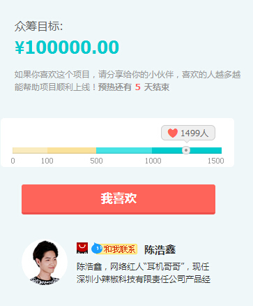 從活動頁面來看,這款指紋識別新機所在眾籌項目已經(jīng)在淘寶正式上線,目前正在預熱階段,用戶從即日起將可通過淘寶眾籌來支持小辣椒,眾籌目標為100000人民幣。作為項目回報,用戶將有機會獲得一部指紋識別手機和一副限量耳機。