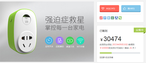 非常在線2015年8月15日消息 日前,創(chuàng)維旗下最新研發(fā)的智能家居新品——?jiǎng)?chuàng)維智能插座在京東啟動(dòng)了眾籌,眾籌目標(biāo)為10萬(wàn)元。這是創(chuàng)維數(shù)字第一次將自家產(chǎn)品放在眾籌平臺(tái)上,是創(chuàng)維布局智能家居、完善智能生態(tài)鏈的一次重要嘗試。