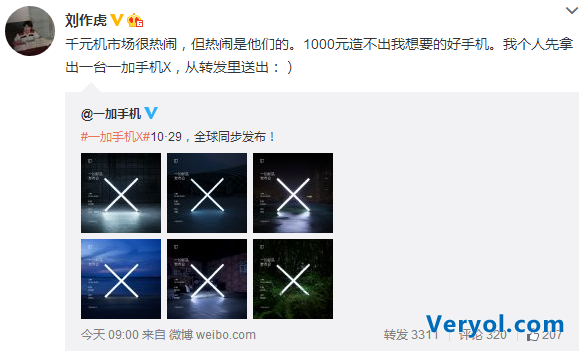 一加手機(jī)X月末發(fā)布!劉作虎:不湊千元機(jī)“熱鬧”