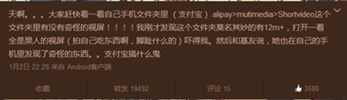 新年來到,驚喜和驚嚇也是一波接一波的。 去年(2015年)年末,朋友圈被一條警示人們預(yù)防詐騙的短信刷屏了。很多人都收到了這條以“HK”打頭的短信,在按照其指令回復(fù)后,自己的手機SIM卡會被復(fù)制,而原本的卡不能再使用,綁定該號碼的支付寶、網(wǎng)銀等就危險了。也就是說,回復(fù)的“HK”指令其實是換卡。 123 隨后,警方和運營商紛紛辟謠,稱這是一條假消息?!癏K”并不是傳言中的“換卡”指令,而是“劃扣”的意思。換卡可以通過短信操作完成,但不是以“HK”開頭,而且換卡指令不會立即生效,需要經(jīng)過二次確認(rèn)才會完成換卡。 近年來,各行各業(yè)發(fā)展都極為迅速,詐騙行業(yè)也不例外。從最初騙騙農(nóng)村老頭老太太,到現(xiàn)在不管什么地方什么年齡什么身份都能騙得你團團轉(zhuǎn),真是防不勝防啊。 這兩天,也就是今年年初,有網(wǎng)友發(fā)現(xiàn)自己使用的安卓手機的支付寶APP文件夾了出現(xiàn)了一些“奇怪的視頻”。最先發(fā)現(xiàn)這個問題的是一位名為@和諧QKI的微博網(wǎng)友,他在1月2日發(fā)微博稱,在自己手機文件夾里(支付寶)發(fā)現(xiàn)了奇怪的黑人視頻,隨后網(wǎng)友大量轉(zhuǎn)發(fā)該微博,并表示也有這種奇怪現(xiàn)象,這些多出來的視頻都是外國人,而且是女人。 詐騙出新招?我們該如何防備?(圖2) 不過,在大量轉(zhuǎn)發(fā)驗證后發(fā)現(xiàn),這個問題只出現(xiàn)在安卓手機上,網(wǎng)友們對此既好奇又驚訝,當(dāng)然,受到的驚嚇才是最關(guān)鍵的,支付寶關(guān)乎的可是個人財產(chǎn)安全。 對此,支付寶回應(yīng)道,其實這些視頻是你平時用支付寶聊天和打開生活圈時的視頻緩存。就像你使用其它聊天工具和視頻軟件(如微信和微博),圖片和視頻等文件都會產(chǎn)生本地緩存是一樣的道理,請不用擔(dān)心。清除也很方便,打開文件長按刪除即可。 但是,這說起來簡單,信起來難。支付寶給的回應(yīng)未免也太牽強了,首先,一般人不會有多少外國友人;其次,我們生活圈子也不至于擴展到全是“歪果仁”;再者,這些生活圈里為什么都是女人;最后,只有安卓機出現(xiàn)了這樣的問題,蘋果就沒有。 快要過大年了,大家還是長點心,多留意個人的人身安全和財產(chǎn)安全,防火防盜防騙子,有問題及時和運營商聯(lián)系確認(rèn),切勿盲目回復(fù)或點擊鏈接。