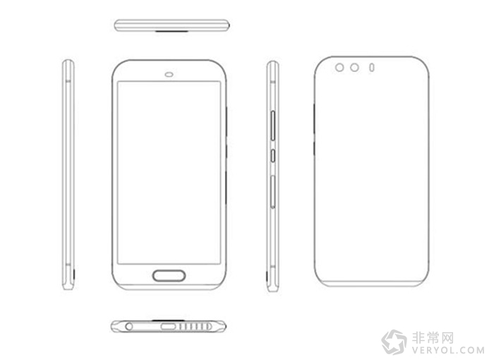 從設(shè)計圖上可以發(fā)現(xiàn)這款手機將有兩個重大改變。其一,從正面看增加了類似三星的Home鍵,這將引發(fā)一系列的化學(xué)反應(yīng),首先,意味著這款手機的指紋識別將由后置指紋識別改為前置指紋識別,當(dāng)然這一改變也會帶來用戶體驗效果的不同。其次這一改變?nèi)绻烧媸欠駮绊懙街笕A為一系列機型,也值得探討。 其二,從背面來看,這款手機竟然也配上了雙攝像頭設(shè)置,參數(shù)方面據(jù)悉均為雙1200萬像素攝像頭,今年以來雙攝像頭屢被提及,也越來越讓相信,雙攝像頭配置會在今年流行了。