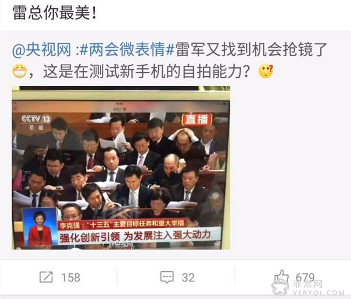 又要火了!雷軍兩會(huì)自拍被央視抓包