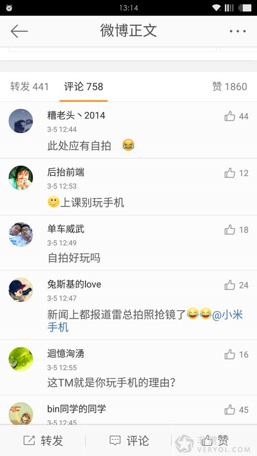 值得一提的是,稍后雷軍的微博上還發(fā)布了一張全國(guó)人民代表大會(huì)的現(xiàn)場(chǎng)照片,不知到這張是不是恰好就是在那時(shí)拍的呢?目前微博下面的評(píng)論基本上已經(jīng)被雷軍自拍的話題攻占,提醒“上課別玩手機(jī)”。 看來(lái)這次雷軍又要火了!