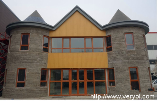 據(jù)介紹這棟3D打印別墅,面積約有400平米,總共兩層,打印時(shí)采用了巨型打印機(jī),和一般的打印機(jī)使用墨水不同的是采用的是融化纖維進(jìn)行層層打印,原材料為一種特殊的混凝土。